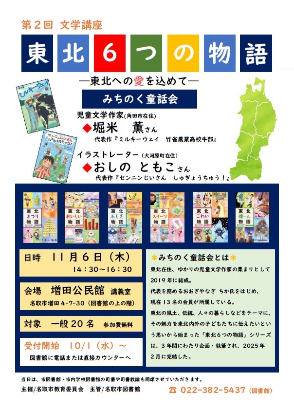 第2回 文学講座 東北6つの物語 【受付:10月1日(水)9:00から】