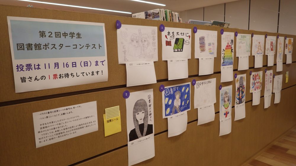 市内中学生を対象に図書館利用に関するポスターを募集し、17点の応募がありました。