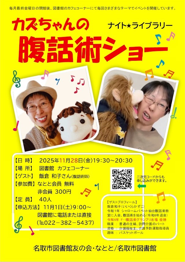 11月 ナイトライブラリー 【受付:11月1日(土)9:00から】
